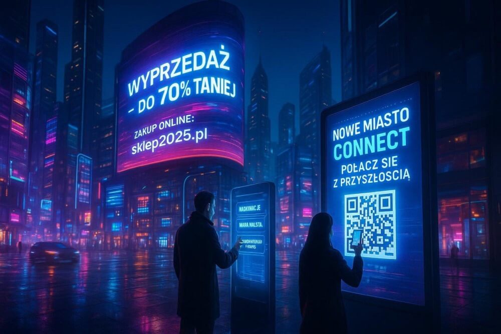 Pomagają w tym kody QR i technologia NFC – po skanowaniu prowadzą do strony www, sklepu online, mediów społecznościowych lub aplikacji. Dzięki temu rośnie zaangażowanie, a ruch z reklamy fizycznej można policzyć w analityce internetowej.