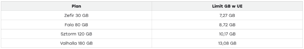 W zależności od wybranego pakietu krajowego, otrzymujesz część swojego internetu do wykorzystania za granicą: